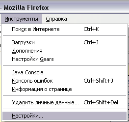 2.1.1. Выбираем в меню "Инструменты" – "Настойки..."